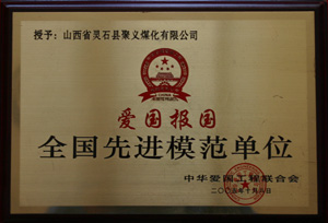 | 2005.6.19 | 聚義煤化有限公司 | 愛國報國全國先進模范單位 | 中華愛國工程聯(lián)合會 |