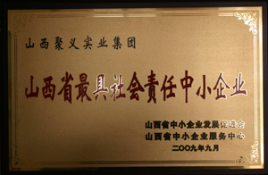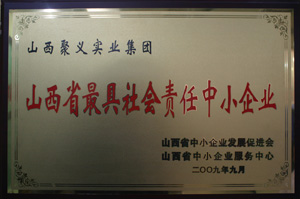 | 2009.9 | 聚義實業(yè)集團 | 山西省最具社會責(zé)任感中小企業(yè) | 山西省中小企業(yè)發(fā)展促進會 |
