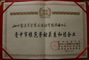 | 2011.2 | 山西聚義實業(yè)集團 | 晉中市勞動關(guān)系和諧企業(yè) | 晉中市人力資源局和社會保障局 |